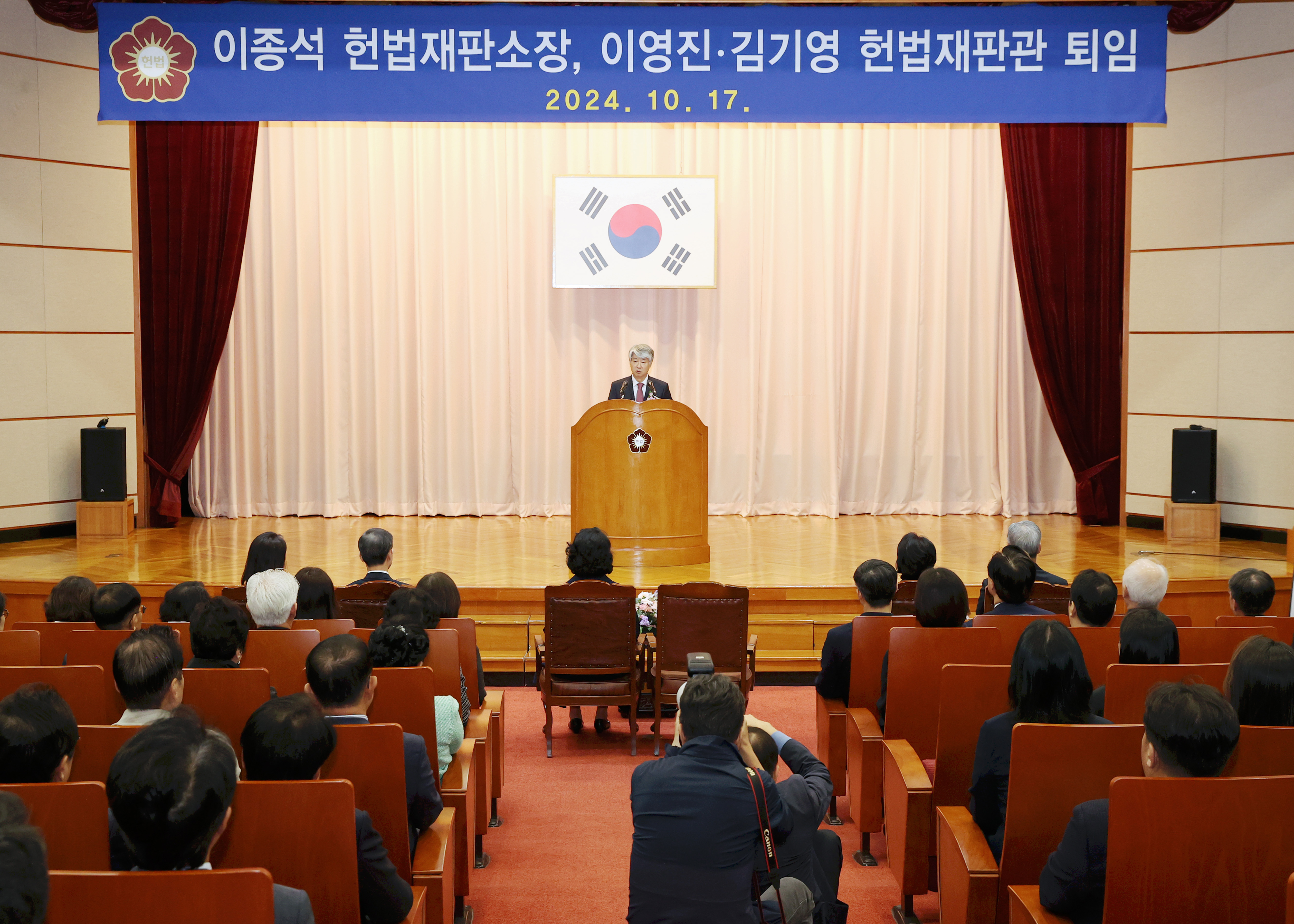 이종석 헌법재판소장, 이영진ㆍ김기영 헌법재판관 퇴임식이 10월 17일 오전 11시 헌법재판소 대강당에서 열렸습니다.