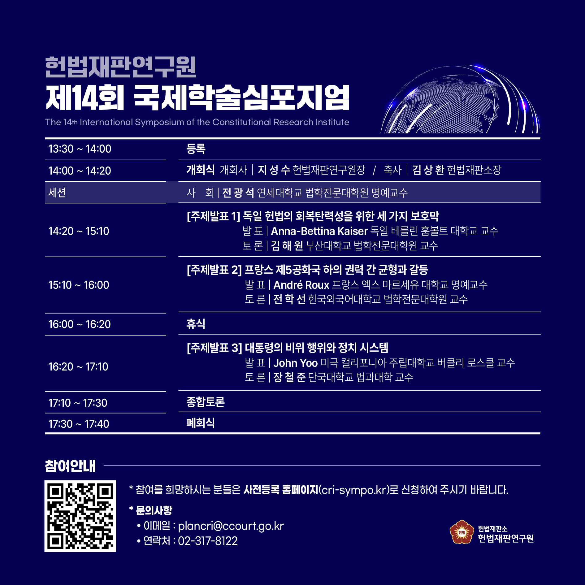 헌법재판연구원은 8월 22일(금) "권력의 충돌과 민주주의의 회복탄력성"를 주제로