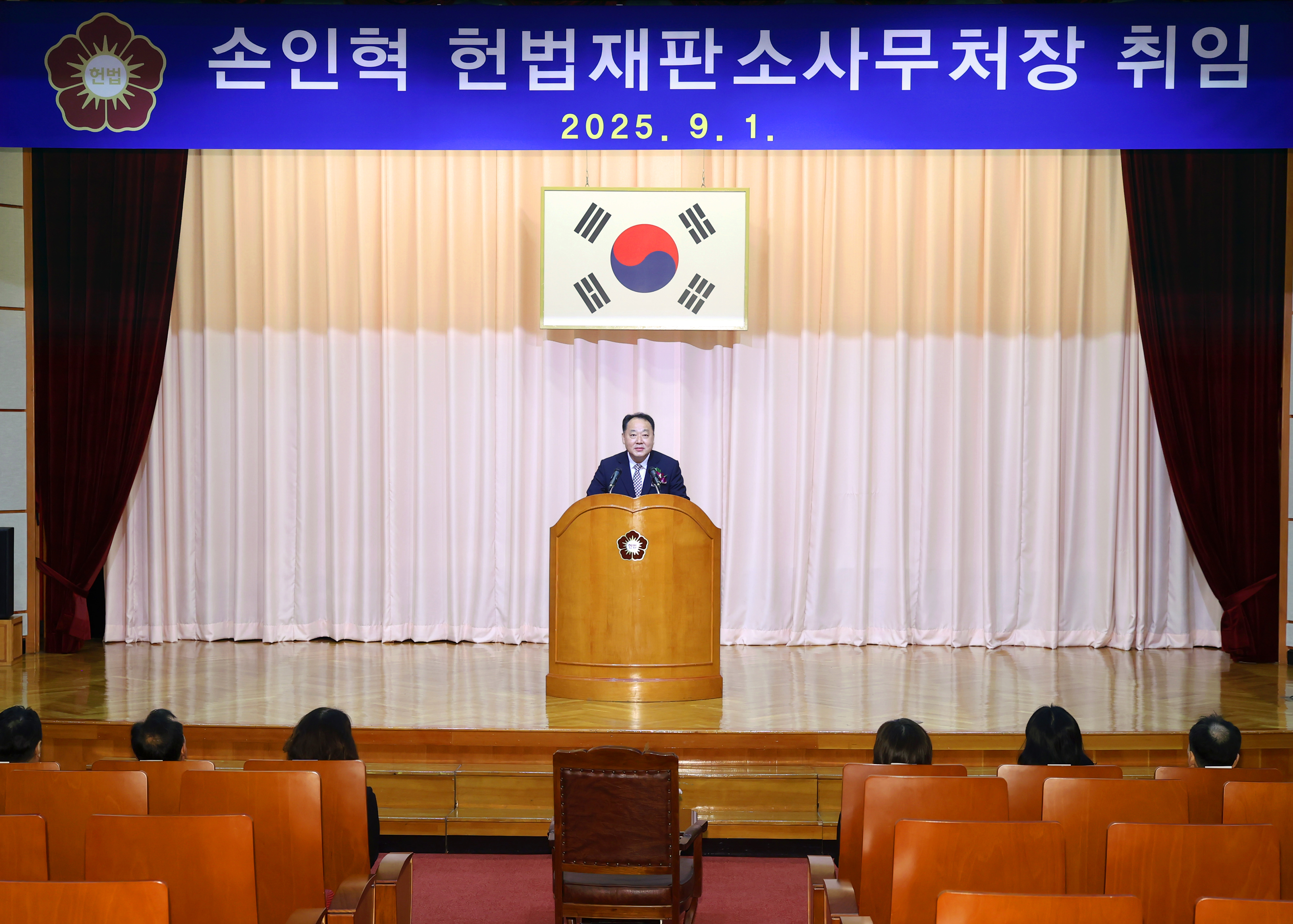 손인혁 사무처장은 취임사를 통해 “지난 7월 취임한 김상환 재판소장님께서는 취임사를 통해, 헌법재판소에 ‘믿고 승복하는 재판, 헌법의 뜻을 국민들과 함께 공유하는 재판’을 과제로 제시하고, 이를 위해 헌법재판절차의 투명성과 헌법재판에 대한 접근성을 강조했다”고 밝혔습니다.