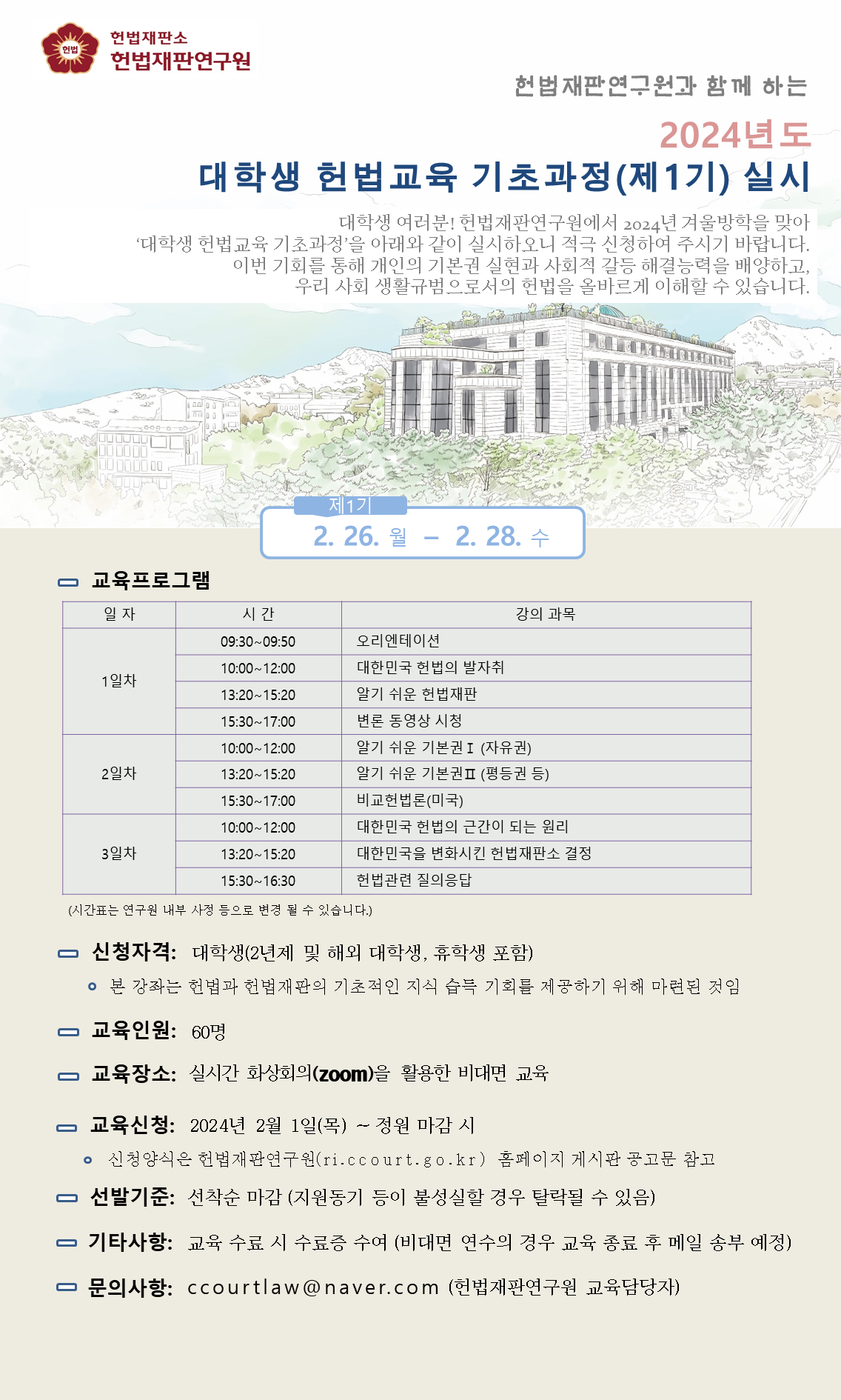 [모집마감]2024년도 대학생 헌법교육 기초과정(제1기) 교육생 모집
