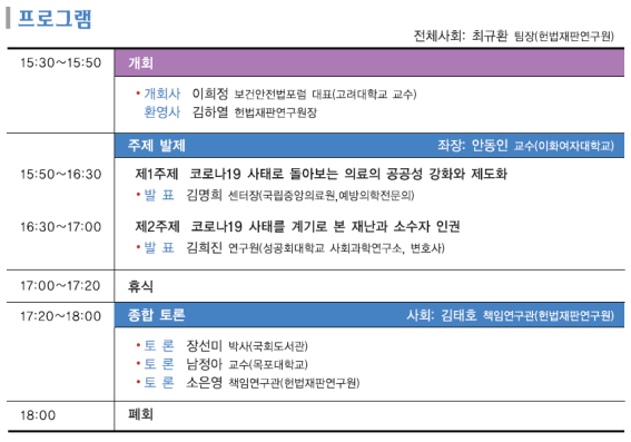 □ 주관: 한국공법학회 사회적 재난과 보건안전법포럼, 헌법재판연구원