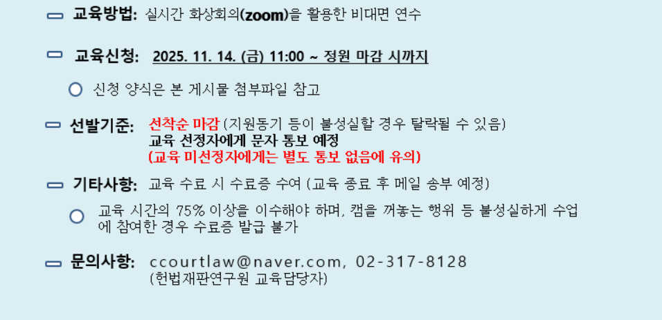 2025년도 대학생 헌법 기초교육 제4기 교육생 모집 안내