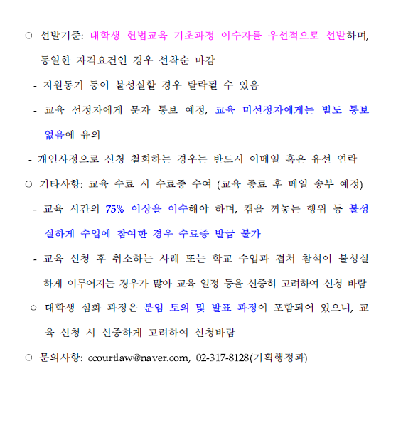 2026년도 대학생 헌법교육 심화교육 제1기 교육생 모집 안내