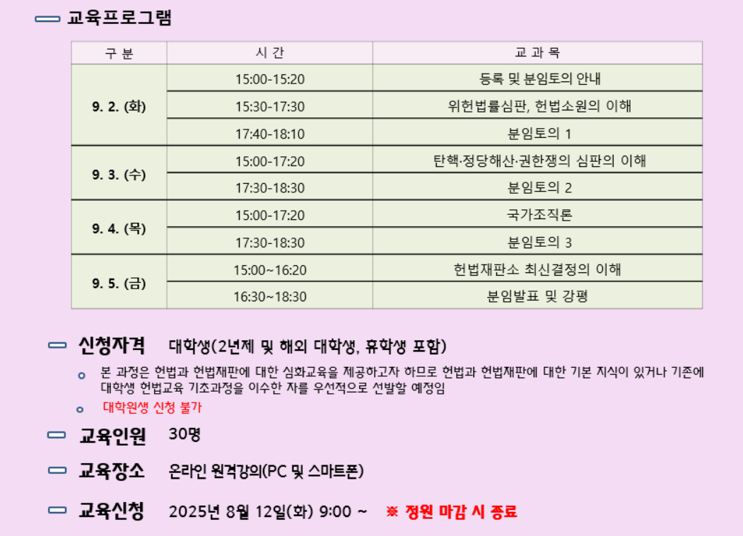 [마감] 2025년도 대학생 헌법교육 심화과정(2기) 교육생 모집 안내