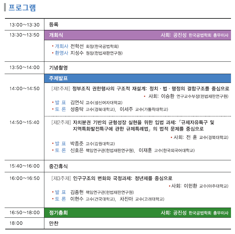 □ 주 최: 헌법재판연구원, 한국공법학회
