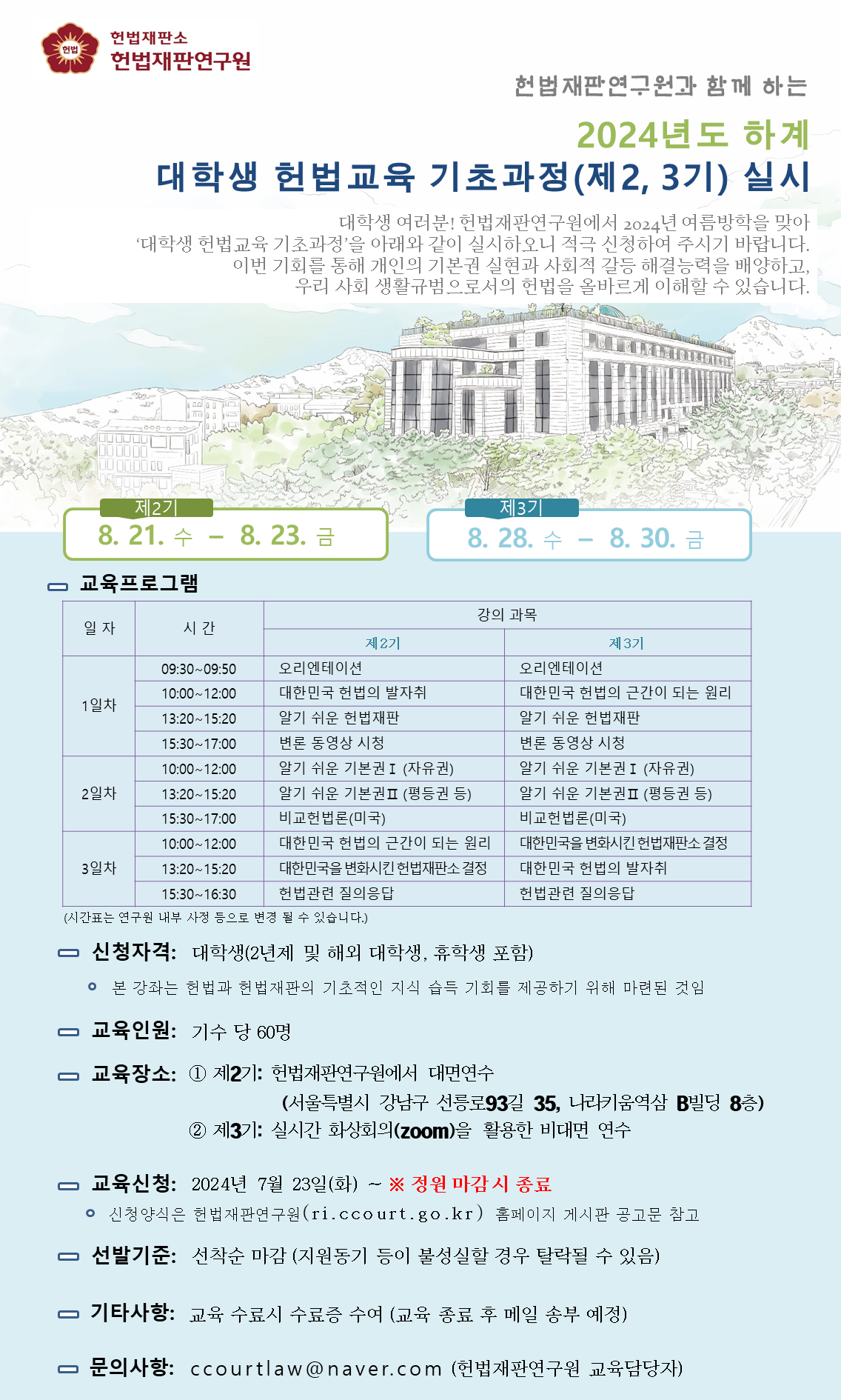★ 제2·3기 대학생 헌법교육 기초과정 모집이 마감되었습니다.